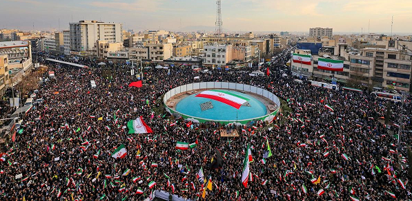 Zein da Iranen erantzuna egoera honen aurrean? Bi elkarretaratze handi ikusi ditugu Iranen, herrialde osoan, urtarrilaren 12an eta otsailaren 11n. Urtarrilaren 12an, aurreko asteko istiluen ondoren, non 3.117 pertsona hil ziren, tartean ehunka polizia, 12 milioi pertsona atera ziren kalera. Gero, otsailean, hilaren 11n, iraultzaren urteurrenean, are manifestazio handiagoak izan genituen. Zenbakiak urtarrilaren 12an baino %25 altuagoak izan ziren. Irango herria batuta dago.