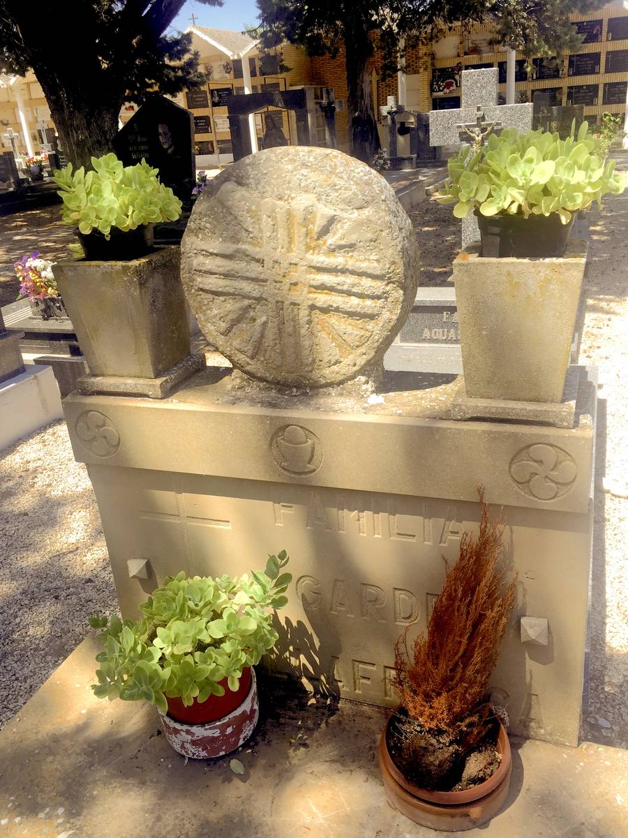 Arripodasen apaiz zebilela hil zen Iruñean, baina gorpua sorterrian ehortzi zuten. Hilarri zahar bat dago Garderen hilobian, berak Bardean aurkitu bide zuena. Hobia aurkitzeko, hilerrian sartu, erdiraino joan eta ezker aldera joko dugu. Hilobian GARDE VILLAFRANCA ikus dezakegu idatzirik, bi lauburu, eta hostia bat. Harlauzan San Migel goiaingeruaren irudia dago, eta bi esaldi: GOYAN BEGO eta LA VERDAD OS HARA LIBRES.