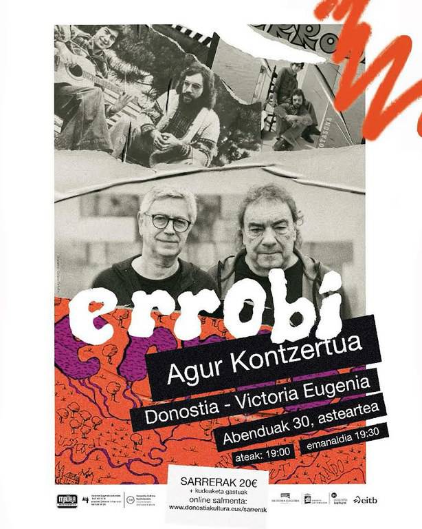 Antzokia lepo beteta eta sarrerak aspaldi agortuta, ia bi orduko agur kontzertuaz gozatu ahal izan genuen Victoria Eugenian. Gaur egungo Errobi taldea Anje Duhalde (ahotsa eta gitarra) eta Mixel Ducauz gain (gitarra, saxoa, txirula) Anjeren bandako hiru musikarik osatzen dute: Txomin Duhalde (Anjeren semea) atabaletan, Iñigo Telletxea baxuan eta Remy Gachis gitarran. Gauzak horrela, oholtzaren atzeko partean presoak etxera eta Palestinar ikurriña zeuzkaten bi lona ikus zitezkeen.