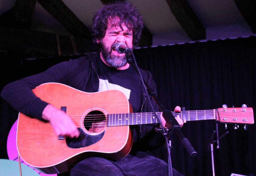 Aurkezpen motz baten ondoren hasi zen Gorka gitarra astintzen. Hasteko, gainera, sorpresa handi bat eta esklusiba totala eskaini zituen, hain zuzen ere Berri Txarraken “Dardara” dokumentalean ateratzen den Gorkaren kantu berri bat: “Mihise zuri bat”. Filmean zatitxo bat ateratzen dela kontuan hartuz gero, hitzaldi musikatu honek eman duen altxorretako bat izan zela esan genezake zalantza handirik gabe. Kantu ederra, sentibera eta biluzia, Gorkaren zigilua daramana. “Hitzen oinarri ahula”, “Denbora da poligrafo bakarra” disko hirukoitz hartako erakuslea izan genuen bigarrena, Goio Ramos (antolatzaileetako bat eta hizlaria) bigarrengoz etorri zen arte.