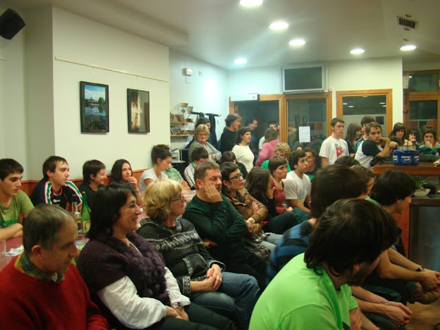 Elkartea jendez eta giroz bete bete egin zen afal orduan eta saio hasteko zegoela jende andana hurbildu zen kaletik bertara saioaz gozatzera. Jada bakoitzak bere lekua hartu zuenean doinu ezagun batean kantatutako agur puntuagarriekin hasi zen gaua. Anderren “Yanke kanpora” doinutik Mirenen Heidiren doinura, doinu anitz eta xelebreak entzun ahal izan ziren.