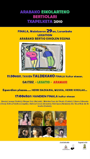 Aupa gasteizko bertso-eskolako neska mutilak! larunbatean egurra... urte osoan fin egin duzue lan eta seguru primeran egingo duzuela... ANIMO!
