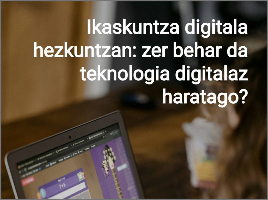 Gure eguneroko bizitzan teknologia digitalaren erabilerarekin alderatuta, teknologia digitalaren bidezko i[ra]kaskuntza ez da proporzionalki orokortu irakasleen prestakuntzan eta eskoletan (pandemia iritsi arte, behintzat)