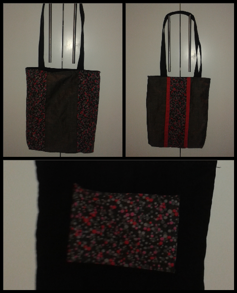 Kotoizko poltsa gris eta loreduna. Alde bakoitzeko diseinu bat du.