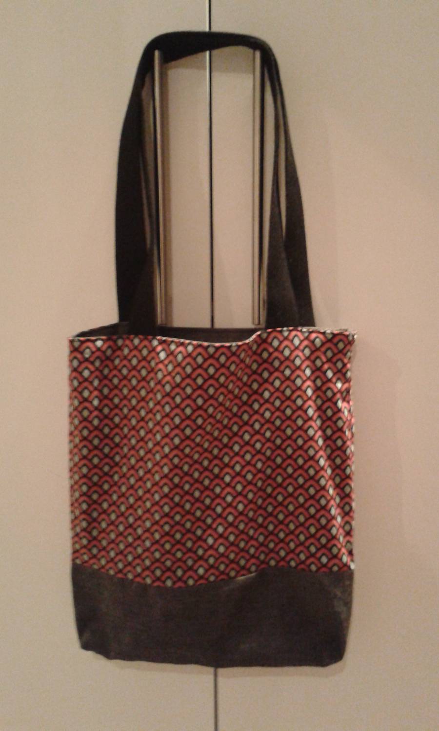 Kotoizko poltsa gris eta loreduna. Bi aldetara erabili daiteke.