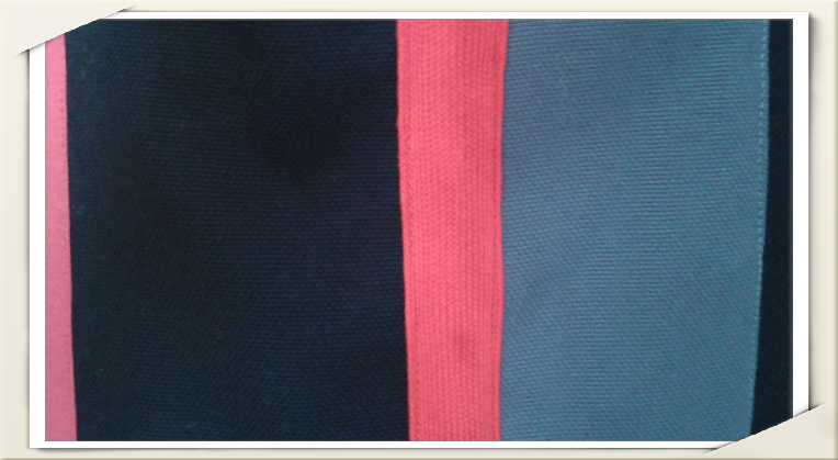 Loneta grisa eta beltza, oihal eta zinta gorriarekin. Tira beltzak eta grisak.