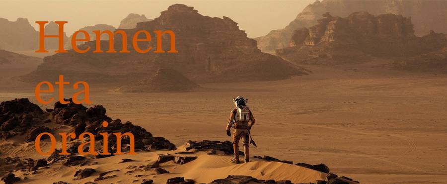Utopia planitian, eguzkiak sututako horma dirudien basamortu laranja kolorekoari begira, Gu behintzat garbi gaude esan du berriro Sabin Chandramayan-Aranak -edo pentsatu besterik ez du egin, ez dago ziur-. Eta ez gara Lurrera itzuliko. Marte da, hemen eta orain, euskaldunon aberria.