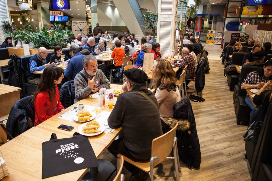 Mintzodromoak, euskaraz mintzatzeko gune bat eskaintzea du helburu batez ere euskara ikasten ari direnei, praktikarako jauzia egin dezaten eta gaurkoan Mendibilek eskaini du paregabeko aukera elkar ezagutu eta elkarrekin mintzatzeko. Gainera, Euskaraldiari hasiera eman diote bertaratuek, bakoitzak bere txapa soinean zuelarik; Belarriprest eta Ahobiziek.