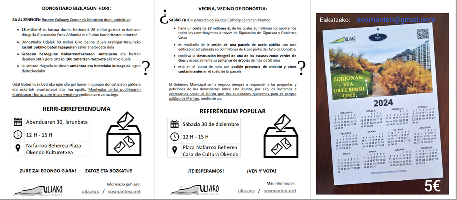 Larunbat honetan, abenduak 30, Uliako Auzo Elkarteak HERRI-ERREFERENDUMA egingo du.