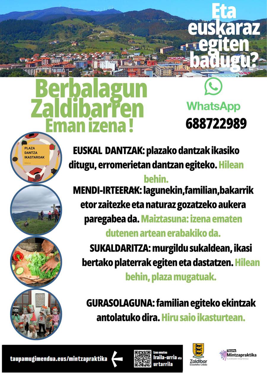 Ezagutu nahi Zaldibarren dauden taldeak? Prest zaude herrian euskaraz gehiago hitz dadin? Hauxe da zure aukera!